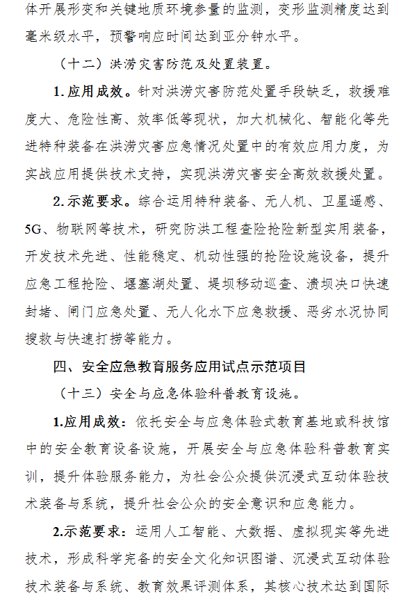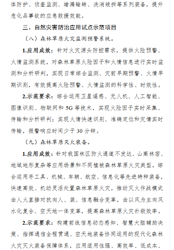 (二)申報條件。申報項目應滿足《安全應急裝備應用試點示范工程實施要素指南(2021年)》(附件)的相關要求,具備技術先進性、應用實效性、模式創新性、示范帶動性等特點。